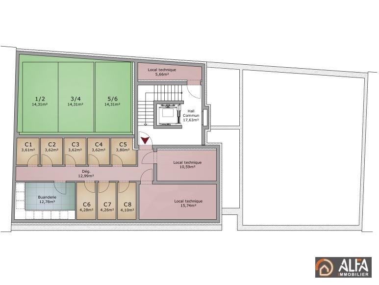 Le duplex dispose aussi d'une cave avec possibilité d'acquérir un emplacement intérieur pour 29'126.21'.