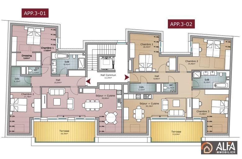 ALFA IMMOBILIER vous présente un appartement (027) neuf au 3ème et dernier étage de la résidence Odéon situé à Rodange proche de toutes commodités. L'appartement comprend :- Hall d'entrée